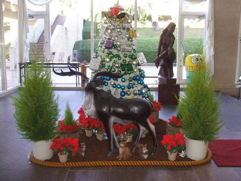 こんにちは。 師走になってしまいました。 藤枝エミナースも、連日忘年会のお客様がご利用くださっています。 昼はグラウンドゴルフなどの湯っくりプランで女性や年配の方のグループが お風呂におしゃべりにカラオケにと本当にゆっくりと過ごしてくださっています。 夜はやはりお酒がメインですね そんな12月ではありますが、館内の彩りを飾ってくれるのがクリスマスツリー 今年のエミナースのツリーはこんな感じです ちょっとトナカイがリアルすぎて、これが見ものだったりもします