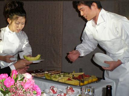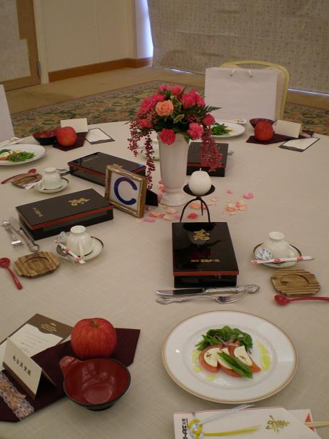 こんにちは。 先日、結婚披露宴に久しぶりに招待され、出席させていただきました。 新郎はエミナースの調理職員、新婦も元エミナース従業員ということで 会場ももちろん、藤枝エミナースでした。 新郎はこの日のために料理を考え仕込み、新婦もなにかひと工夫を・・・ ということで、列席者のテーブルにリンゴをひとつずつ置いてありました。 新郎新婦とも終始笑顔の絶えない、温かく、和やかな披露宴でした。 それでも、いろいろな趣向がこらされており、 特に印象的であったのは、ウエディングドレスの後の再入場が 新郎の職業にちなんでお二人とも調理着ということでした。 この格好で、デザートを取り分けていましたので、 衣裳が汚れて困るという心配もなしで、なかなかよいアイデアとも思いました。 随所に「おもてなし」が感じられた、とても思いやりのある感動的な披露宴で 幸せのおすそ分けをしてもらった、そんなひとときを過ごせました