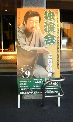 こんにちは。 恒例の三遊亭鳳楽師匠による寄席を本日開催しました。 本日の演目は「花見の仇討ち」と「百年目」で、師匠は熱演されて、 ご出席された皆様は1時間半ほどの時間、引き込まれるように聞き入っていました。 「花見の仇討ち」の中で、「六部」という勉強不足の私にはよく理解できない言葉があったので、 あとで調べてみると、「日本全国66カ国を巡礼し、1国1カ所の霊場に法華経を1部ずつ納める修行僧」を 「六十六部」と言うそうで、略して「六部」だということです。 なるほど、自分にはまだまだ知らない言葉がたくさんあったものだと、情けなくもなり感心もしました。 また、本日のテレビ「笑点」で、師匠が口上を述べていたそうですよ。 まさに師匠が熱演されている時間でしたので、テレビを見ることもできず、録画もしてませんでした。 滅多にテレビ出演されないだけに、録画しておけばよかったです また、寄席が終わった後は、お食事。 今日の料理はこんな感じでした