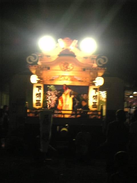 こんにちは。 本日、藤枝大祭の最終日です。 2日目の昨日、少し雨に降られましたが、概ね天気は良好のようです。 お祭りの会場となっていることろは、どこもにぎやかで、盛り上がりを見せています。 各家庭では、提灯を軒先に吊るしています。 今年初参加となった「原区」ではおにゅーの提灯です。 飽波神社ではこんな様子。屋台を奉納しているところです。 夜はこんな感じ・・・ ちょっとライトがまぶしかったですね。 ちなみに、先頭にいるのは「藤娘」です。 屋台は「それやれやれよ~」などという掛け声のもと曳かれています。 そういえば、この掛け声は藤枝独自なのでしょうか・・・?