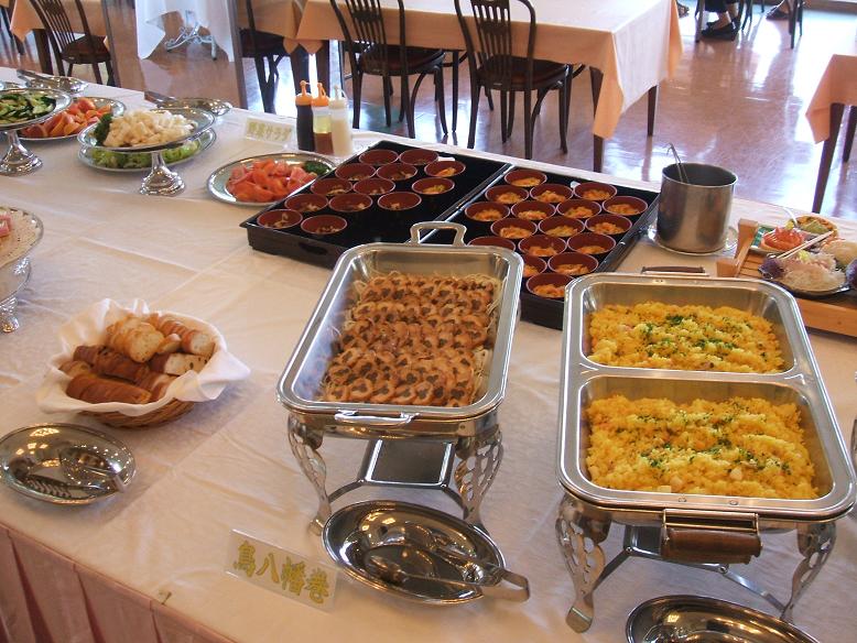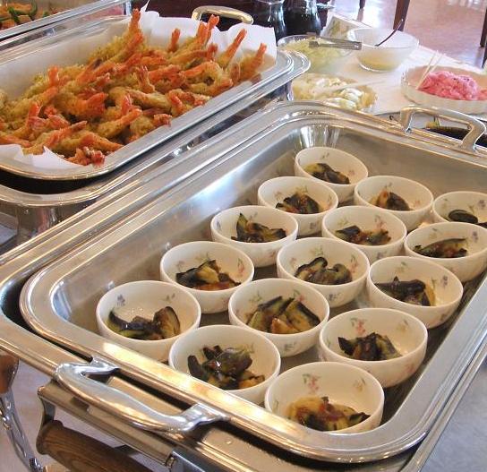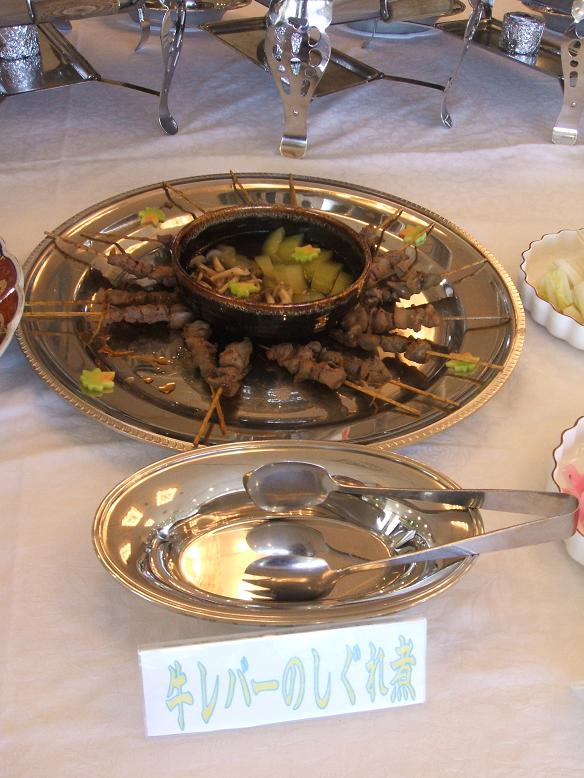 こんにちは。 本日、8月25日(火)から27日(木)までの3日間、 恒例のランチバイキングを開催しています。 お子様が夏休み中という事もあり、11時の開店が爆発的に来館されるのではと 懸念されていましたが、予想に反してジワジワと来てくださっております。 今回もデザートは豊富に、定番のお刺身もご用意してあります。 そのほかには、揚げ茄子、若鶏の照り焼き、冷製のコーンスープ、 そして夏ばてには有効な牛レバーのしぐれ煮などもございます。 是非、夏ばてを吹き飛ばすべく、バイキングでたくさんお召し上がりください。