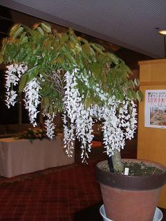 こんにちは。 只今、藤枝市の蓮華寺池公園等で藤まつりが開催されています。 それに伴い、藤枝エミナースにも藤の花の鉢植えを登場しました。 フロントとレストランにそれぞれ一鉢ずつ。とても良い香りがしてきます。 また、蓮華寺池公園では、藤まつり期間限定の藤娘キティちゃんを販売しているとか。 とてもかわいらしいので、思わず一つ買ってしまいました