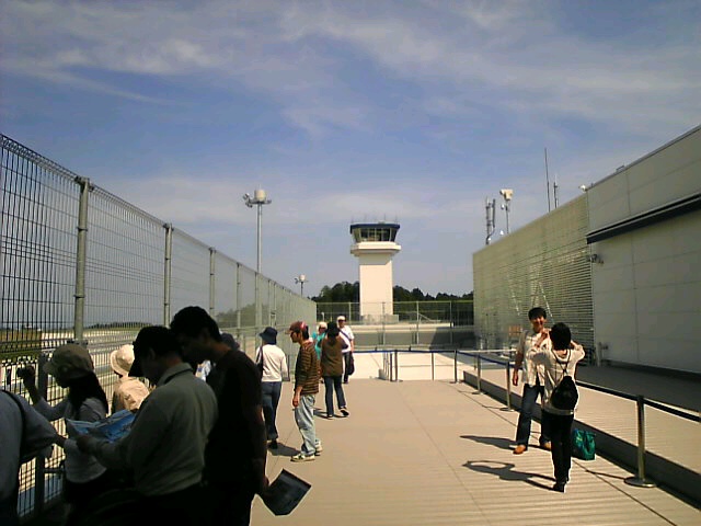 吉田公園の駐車場に車を置いて、無料のシャトルバスで来た人たちが、入場できず1時間待ち。 私たちも炎天下の中、1時間入場者の列に並び、やっと入場。 真新しい空港ターミナルビルは広々としてすばらしい ![]() ![]() ![]() 3階の展望デッキから管制塔・今日は見えませんでしたが、富士山まで見渡せるとの事