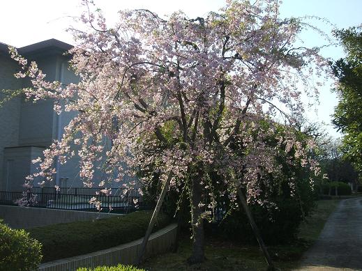 こんにちは。 思うところがありまして、今日は桜をたくさん撮影してみました♪ こちらはレストランから遊歩道に続く枝垂桜。 このあたりで先日、工事が行われていたので、 見ごろを逸してしまいました 相変わらず見事な桜です。 こちらは、レストラン前の枝垂桜。 写真の映りがいまひとつですが、上の桜よりも、 少し見ごろが遅い感じですね。 こちらは藤枝市の水道タンクとの分かれ道のソメイヨシノ。 「落下さかん」といったところで、すっかり見ごろは終わってしまいました それでも、地面に落ちている花びらたちが舞う様は美しいですね。 そして、こちらはエミナースから西側の山々を見た風景です。 薄ぼんやりした桜と、新茶の芽が出てきたお茶畑の黄緑色と そのほかの木々の濃い緑のコントラストが 何とも言えず美しいですね。 桜を撮影したといっても、この程度の写真で大変失礼しました